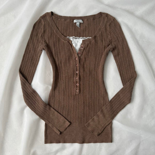 Aeropostale ribbed brown henley top (M)