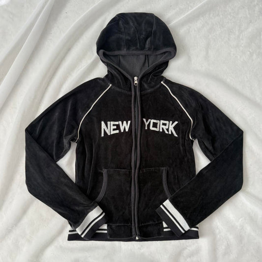 New York velvet zip up sweatshirt (fits XS-S)