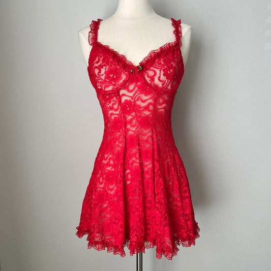• Red y2k princess babydoll slip (L)