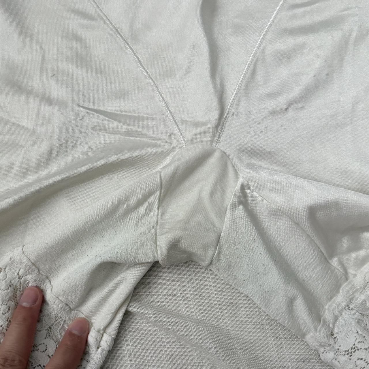 The others have wear due to the age. White satin shorts have pilling and wear by the inner thighs. Girdle skirt is slightly discolored. Vintage panties have wear but no stains.
