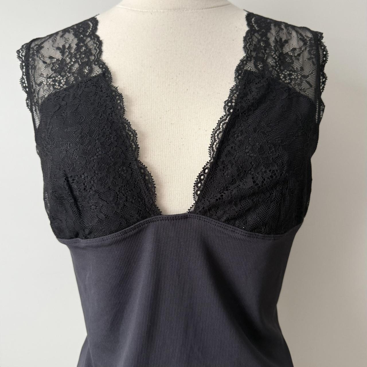 Stretchy cool fabric. Lace bust. V neckline